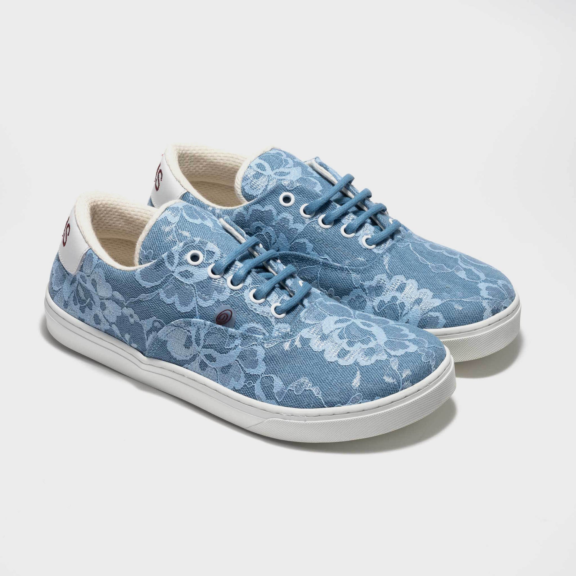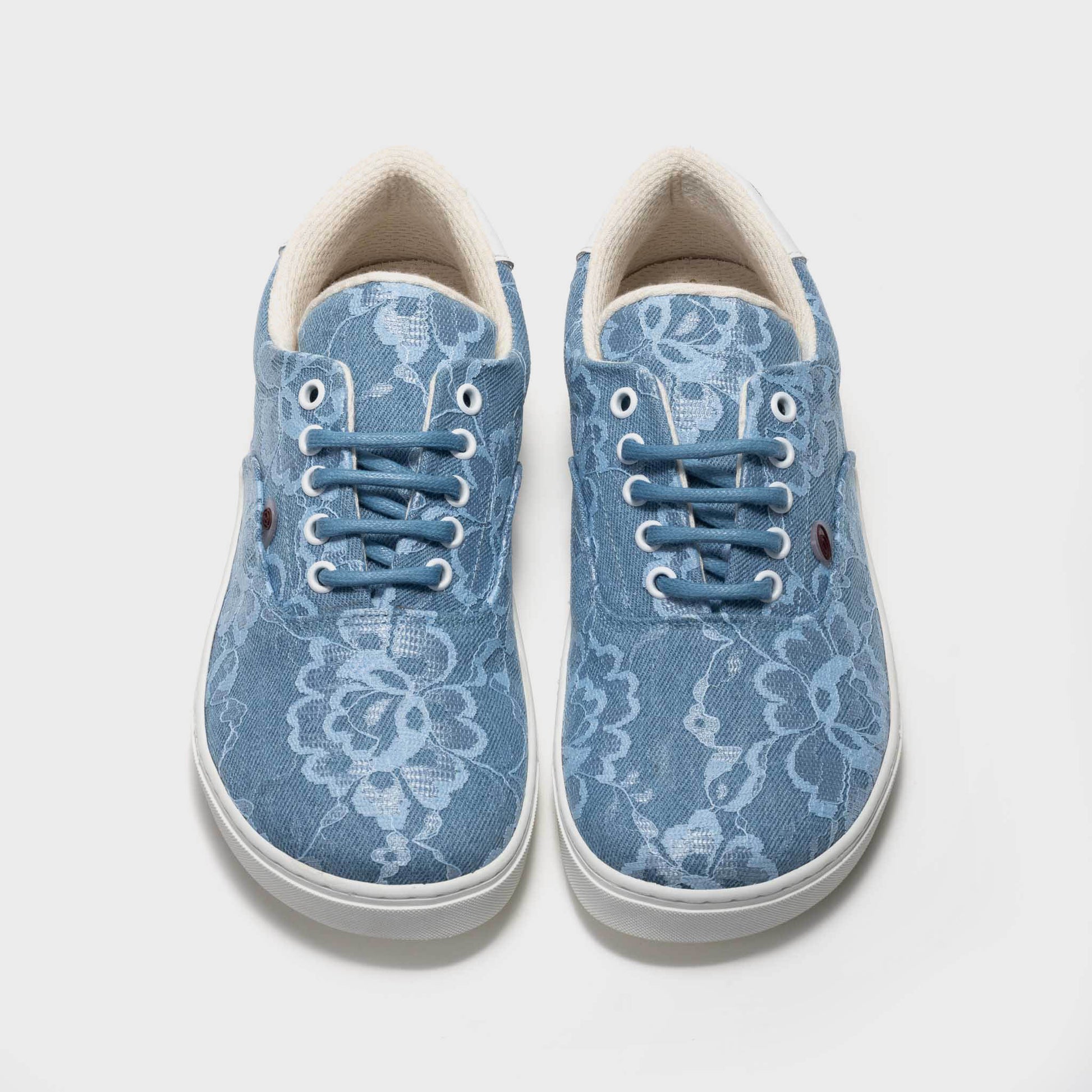 Zapatilla inglesa barefoot en denim con flores magnolia