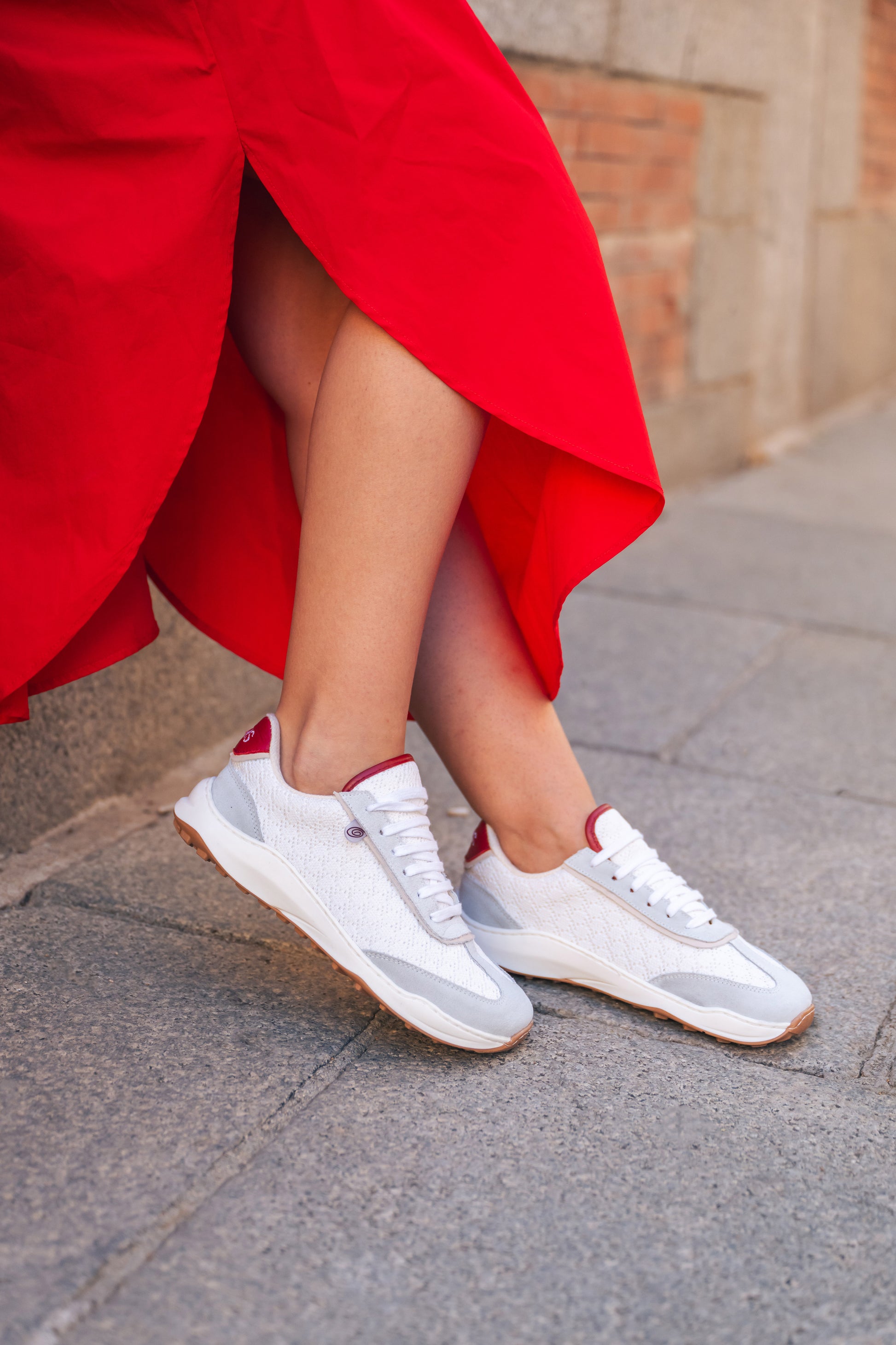 Zapatilla deportiva barefoot en tejido crochet y serraje blanco