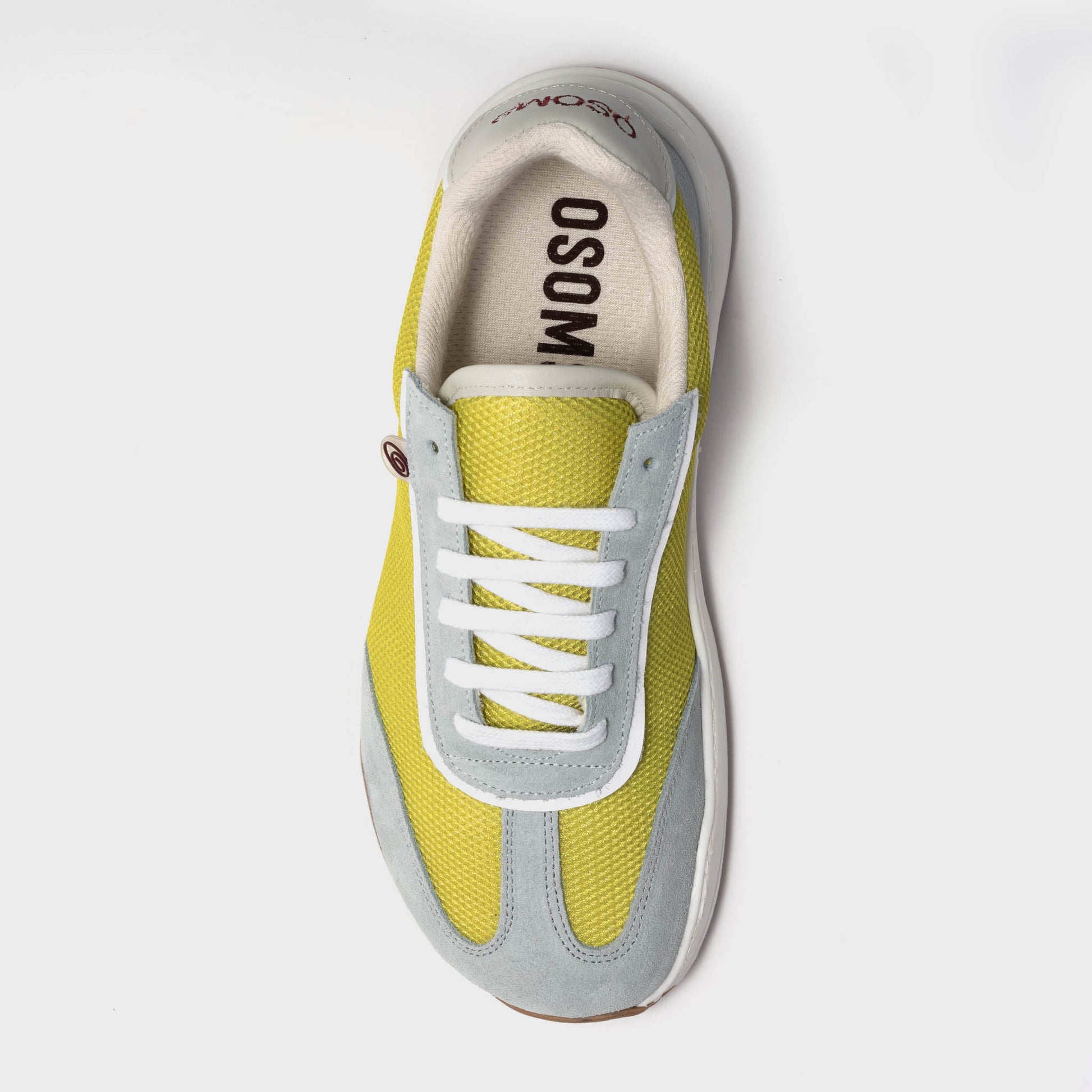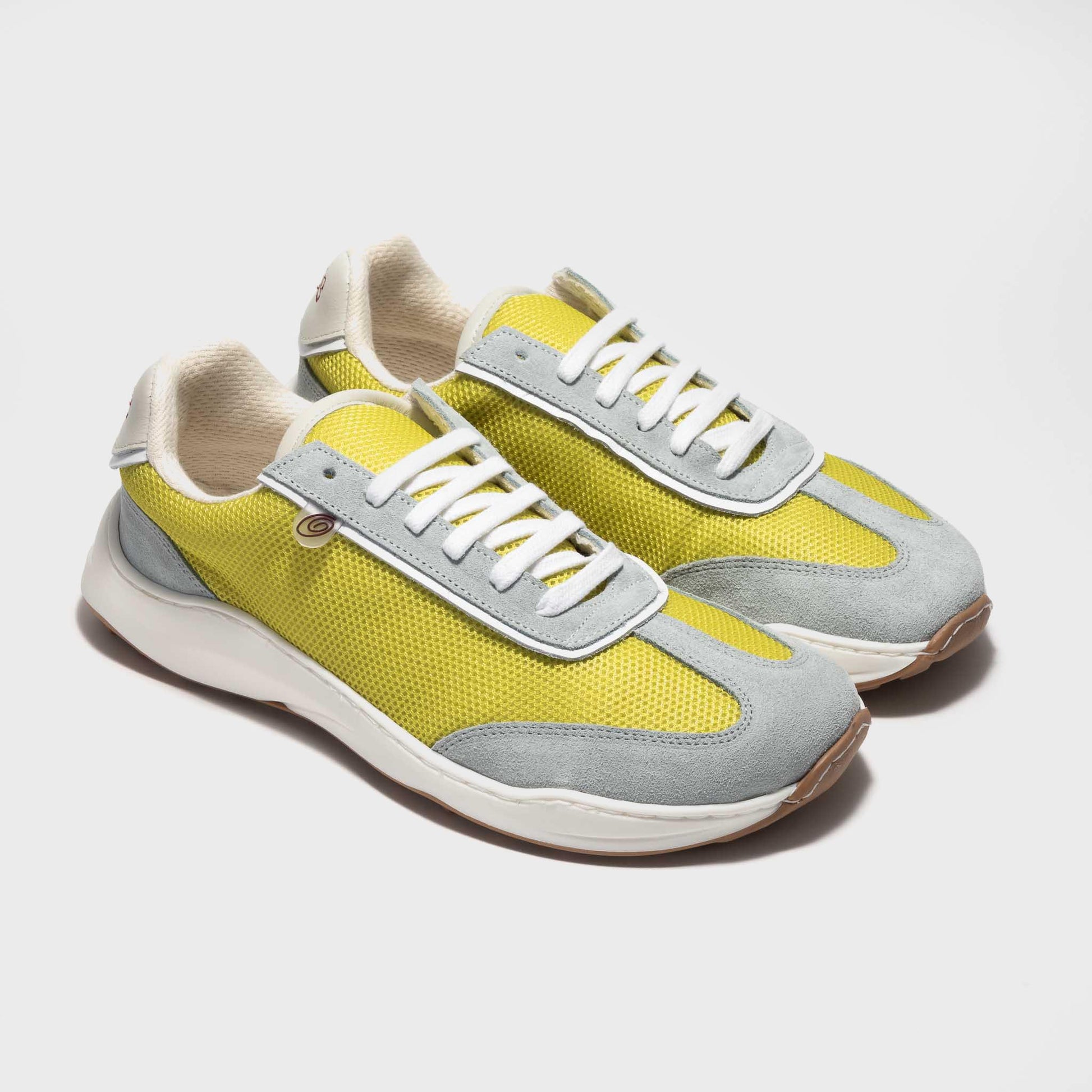 Una fusión atrevida y fresca. Esta zapatilla combina la ligereza de una rejilla en vibrantes colores con la suavidad del serraje, creando un contraste armónico lleno de personalidad.